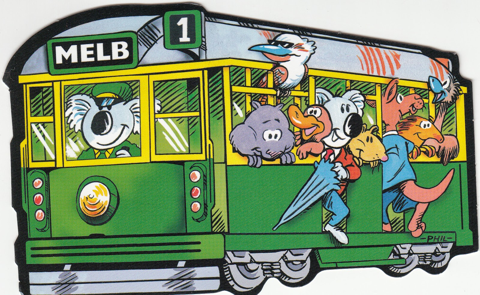 The card from Australia is shaped like a City Circle Tram from Melbourne. The City Circle Tram runs around the central business district of Melbourne and is mainly used by tourists.