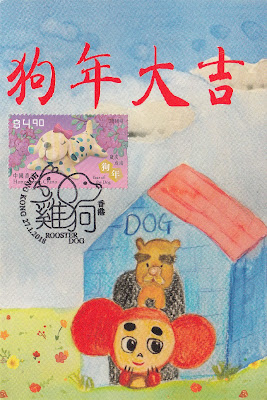 Both cards from Hong Kong are Year of the Dog maxicards. Hong Kong issued four Year of the Dog stamps and accompanying philatelic souvenirs on 27th January 2018. Two of the stamps and one of the Heartwarming stamps were used on the two maxicards with two different special postmarks.
