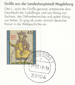 Last Thursday I was in Magdeburg and there I bought some cards for my collection. On three of the cards I put matching stamps and got them handcancelled at the local post office.