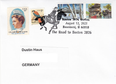On 5th October arrived this cover with a nice postmark about the Postmark Collectors Club. With this stamp it is no wonder that this cover is perfectly cancelled. The two stamps from the set of five about Lighthouses of the Mid-Atlantic (issued 06-08-2021) got the special postmark and the small stamp about Oliver Wendell Holmes (issued 08-03-1968) got a normal round date postmark.